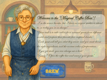 Articulate Challenge #524 – How to Brew the Best Coffee & Espresso Drinks Welcome to the Crossroads Cafe, a whimsical drag-and-drop interaction where learners take on the role of a barista serving enchanted drinks to guests from across fictional universes. ☕ Project Concept In this interactive experience, players are left in charge of a magical coffee shop after the senior barista is called away on urgent business. One by one, guests arrive — each inspired by beloved characters from books, shows, and movies — and place their orders for fan-favorite drinks like Butterbeer, Blue Milk, and Miruvor. 🎮 Gameplay Drag & Drop Mechanics: Learners select ingredients and place them into a mug in the correct order. Hints Available: A recipe card is available for reference if the learner needs help. Serve & Feedback: Once the drink is assembled, the learner presses “Serve” and receives themed feedback from the guest — magical praise or playful critique. Progress Tracking: The game tracks how many drinks were made correctly, with a final summary and stylized feedback. 🎨 Design Style Classic 2D animation inspired by mid-20th century cartoons Watercolor textures with bold outlines Magical UI elements and whimsical decor Custom illustrations for guests and environment 🧙♂️ Senior Barista’s Message “Ah, welcome, apprentice! The guests are lining up, and the steam is rising — it’s time to brew some magic. Drag the correct ingredients into the mug, press ‘Serve’ when ready, and consult the recipe card if you need a hint. Every cup carries a little enchantment — brew wisely!” ⚠️ Disclaimer All visual assets in this project were created using AI tools and custom design. Guest characters are original creations inspired by popular fictional archetypes and do not directly represent or reproduce any copyrighted characters. This project is intended for educational and creative demonstration purposes only. Crossroads Cafe