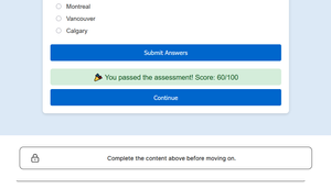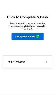 How to use the new Rise Custom HTML blocks as a completion trigger. This new Rise feature is awesome, but by default, any custom blocks you code mark as complete the moment theyโre viewed. Not great if youโve built a custom interaction or assessment which you want to ensure is completed as part of the learning experience. A workaround: add a SCORM call inside the block so the course only completes once the learner finishes your custom interaction. https://rise.articulate.com/share/XAi7AbMB5pkMWJLx-9QV3jRXhutox1ZK#/lessons/RNTzkftIhxH9pcezL0NtonVnN-a9Ee91 here is one I made earlier, Iโve tested it and this overrides any native completion trigger set on your rise course export. The full HTML code is beneath for you to repurpose as needed. This approach should work for Scorm 1.2 and 2004. To ensure the native rise triggers donโt conflict with our custom one eitherโฆ In cases where you can turn off navigation and buttons, add a hidden inaccessible final lesson and set the rise course completion trigger to 100%. If navigation needs to be active, drop in a storyline block with no completion trigger and set that as the native completion marker on export.Solved209Views3likes4Comments