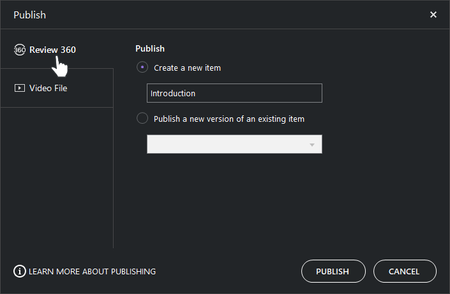 Publish Replay 360 projects to Review 360 to collect feedback from stakeholders, or publish them as MP4 videos on your local computer so you can add them to your e-learning courses. Here’s how. Publishing to Review 360 Publishing to a Video File What Dimensions Will My Published Project Be? Publishing to Review 360 Click Publish on the ribbon. When the Publish window opens, choose the Review 360 tab on the left. (If you have an Articulate 360 tab instead of Review 360, update Replay 360 to see all the latest enhancements. We changed the name to Review 360 on January 23, 2019.) Choose to publish a new item or update an existing item: Create a new item: Mark this option to publish a brand new content item to Review 360, then give it a title. (The title defaults to the name of your project file. You can change the title of your published project here without affecting the name of your project file.) Publish a new version of an existing item: Mark this option to update an existing content item located in your personal or team folder in Review 360, then select the item you want to update. (Review 360 keeps track of version history, so you can always view previously-published versions of the content item.) Click Publish. Your project gets published and uploaded to Review 360 all at once. How fast this happens depends on the size of your project and your internet speed. When the Publish Successful dialog appears, click View Published Content to open Review 360 in your default web browser and manage the video you just uploaded. Distributing Your Published Project: To give viewers access to your published video: Open your web browser to your Review 360 home page and click your video to open it. Click Share in the upper right corner. If you want to password-protect your video, mark the box to Set a password and enter a password in the field provided. Copy the shareable link, then send it to your viewers. Be sure to give them the password, too, if you added one. If you don’t want viewers to post comments on your video, click the ellipsis (...) button in the upper right corner and choose Disable comments. Note: Although share links are public, we prevent search engines from indexing our site so they won’t be searchable. However, if you post these links on a public web page, they may be indexed by a search engine. To protect confidential information, set a password or limit access to specific users. Learn more about using Review 360. Publishing to a Video File Click Publish on the ribbon. When the Publish window opens, choose the Video File tab on the left. Give your project a file name. (It's best to use only letters, numbers, hyphens, and underscores. Don't use spaces or special characters.) The maximum length for a project name is 80 characters. Browse to a location on your local hard drive where you want to publish. Click Publish. When the Publish Successful dialog appears, you can play the video immediately or open the folder where it was published. Replay encodes your projects as MP4 videos, so they’re perfect for embedding in e-learning courses or uploading to the web as standalone projects. What Dimensions Will My Published Project Be? Your Replay project will be as wide as your widest video clip and as tall as your tallest video clip. Video clips and images that are smaller than these dimensions will be centered on the stage and scaled up. For example, let's say you add two video clips to a Replay project. One is 1,920 x 1,080. The other is 1,280 x 720. Replay will publish an MP4 file that is 1,920 x 1,080 (matching your largest video clip), and the smaller of your video clips will be scaled up to 1,920 x 1,080. Since scaling can lower the quality of your published output, we recommend using video clips with the same dimensions.1.5KViews0likes0CommentsReplay 360: Creating Your First Screencast Video