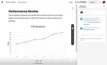Once you've published your content to Review 360, you can reply to and resolve comments right in Rise 360. You can even add suggested images directly from comments! Here's how it works. View Comments Add Images from Comments Post Comments Resolve and Reopen Comments View Comments Review 360 comments only appear in content you've published to Review 360. Click the comment icon in the upper right corner to expand the Comments panel. All comments for the currently selected item appear in the panel. For courses, click the lesson title above the comment to jump to that lesson. Each comment includes a screenshot of how the content looked when the stakeholder added feedback, providing context for your edits. Click the screenshot to maximize the image. Linked Review 360 Items If you post multiple Review 360 items for a course, you can see comments and address stakeholder feedback for each from the same interface. Once you upload a new version to Review 360, the Comments panel displays a drop-down menu where you can easily switch between items. Add Images From Comments You can quickly add images attached to comments to your lessons. Navigate to the lesson that contains the comment with an image, hover over the image, click the magnifying glass icon that displays, and click the arrow icon that displays next to the enlarged version of the image. This adds an image block to the bottom of the that lesson. You can also download or delete the image from the comment. Post Comments Continue collaborating with stakeholders without leaving Rise 360 by adding a new comment or replying to an existing one, then clicking Post. If you change your mind, click Cancel. Your comments automatically sync with the discussion in Review 360. Hover over your posted comments for edit and delete options. Keep in mind that comments are organized by lesson and sorted by when they were originally posted, with the newest comments for each lesson at the top of the list. Note: Unlike with Review 360, screenshots aren't automatically created when you start a comment thread in Rise 360. Resolve and Reopen Comments As comments are addressed, resolve them to keep the comments panel from getting cluttered. Hover over an individual comment or the first comment in a discussion thread, then click the checkmark icon that appears. You can also reopen a comment or discussion that was previously resolved. Select the Show resolved option, then hover over the comment and click the green Reopen checkmark icon.1.1KViews0likes0CommentsReview 360: Use Comments to Give Feedback