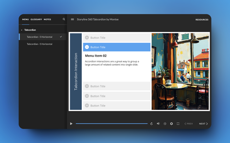 This Storyline template features two ways to use interactive sliders to visually compare two versions of an image. The first example features a simple yet effective two-step slider allowing learners to toggle between 'before' and 'after' views – perfect for those clear-cut comparisons. The second slider ramps things up a notch using ten steps to create a smooth transition from one image to the next. View the project3.6KViews13likes7CommentsStoryline 360: 3-Button Tabs Interaction